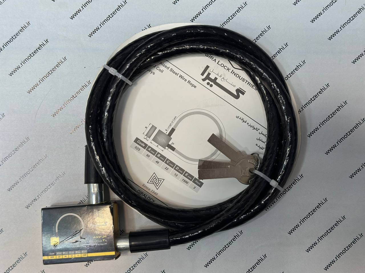 قفل گیرا ، جنس بدنه فولاد، روكش پلاستيك، قفل كابلي سيم بكسل، مناسب براي موتور سيكلت و دوچرخه